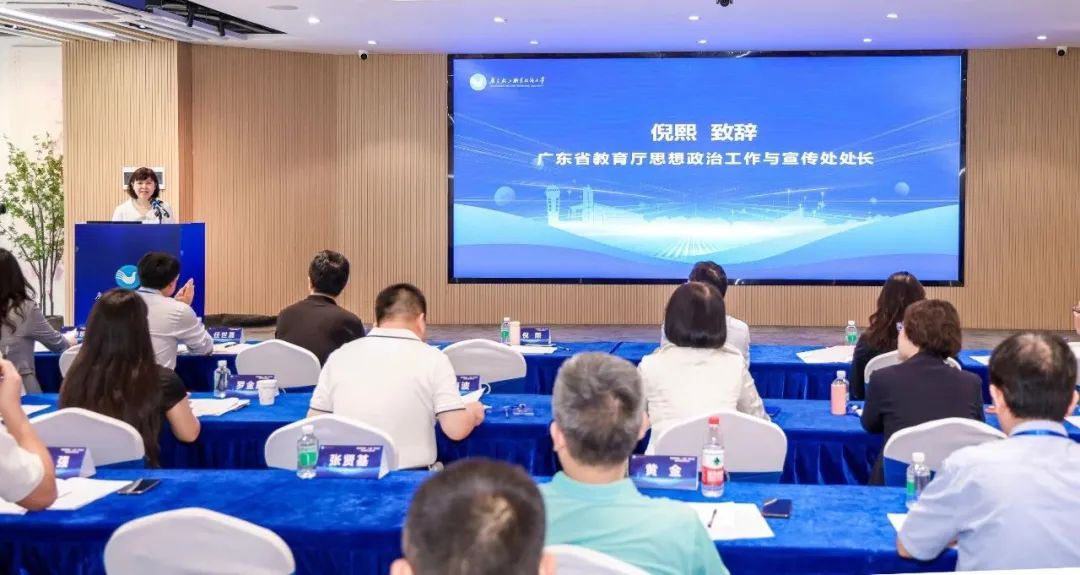 广东省教育厅思想政治工作与宣传处处长倪熙在会上详细介绍了广东省高校“一站式”学生社区的建设情况。