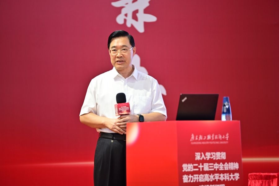 杜安国为全体教师做主题报告,指出要坚持不懈用习近平新时代中国特色社会主义思想凝心铸魂,深入学习贯彻习近平总书记关于教育的重要论述,大力弘扬教育家精神,勇担强国建设使命,以实际行动践行育人初心,以高水平职教本科建设更好支撑和服务中国式现代化。