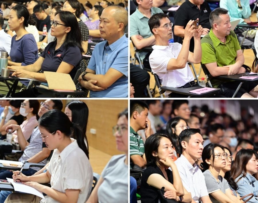 新学期在即,一同奏响广轻大的改革奋进最强音!学校党委高度重视此次全员培训,为提高学习质效,精心组织谋划,力求让全校教职员工做到深学细悟笃行。培训特邀深圳市政协科教卫体专委会专职副主任孙湧,全国道德模范、全国优秀教师赖宣治,分别以“职业院校人的培养若干思考与实践”和“职业理想与情怀”为题做专题讲座。相关二级学院、职能部门负责人围绕高水平本科办学,结合岗位实际报告工作思路。学校优秀教师代表龚盛昭、叶军以大力弘扬教育家精神为主题,结合自身的工作经历,分享了如何做好新时代高素质专业教师、服务学校高质量发展的工作感悟。