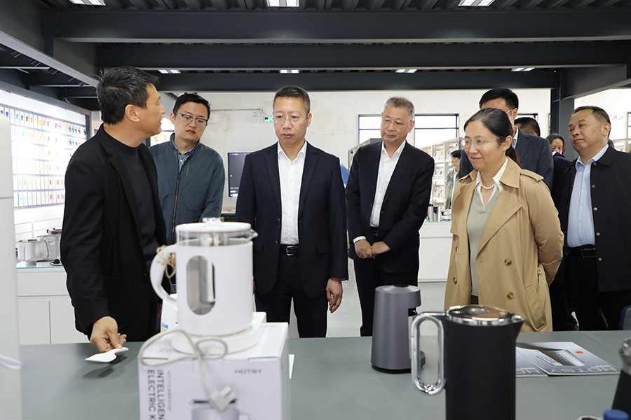 陈敏生一行在校领导的陪同下,实地考察了国际数字创意谷,教育部高校思想政治工作创新发展中心(广轻工)、多功能展示中心,详细了解学校在职教办学、产教融合和党建思政等方面的经验和成果。
