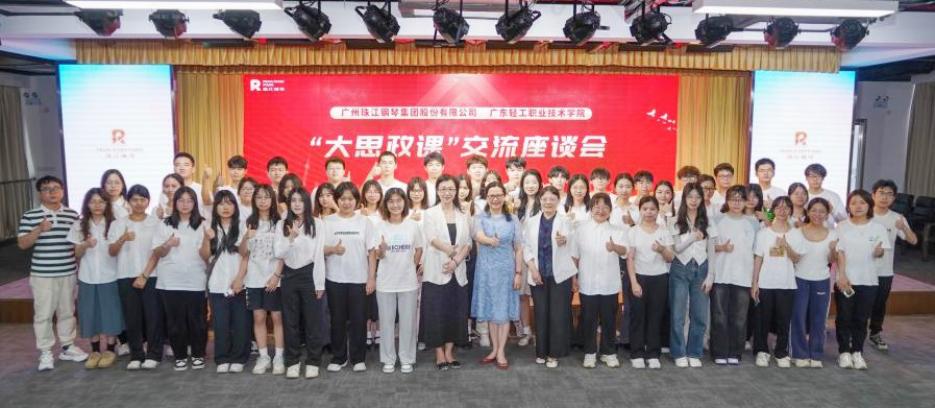 师生们参观了“一馆一厅一车间”红色教育基地,近距离了解珠江钢琴集团自主研制的钢琴制造专用设备和环保生产流水线,了解世界钢琴艺术起源与发展、珠江钢琴企业文化、发展历程、品牌故事。在“大思政课”交流座谈会上,华静介绍了集团的发展历程,马克思主义学院副院长蔡小介绍了学校和学院的基本情况,就共同推动“大思政课”实践教学提出建议。随后,王铁明与蔡小葵代表校企双方进行了“大思政课”实践教学基地签约仪式。