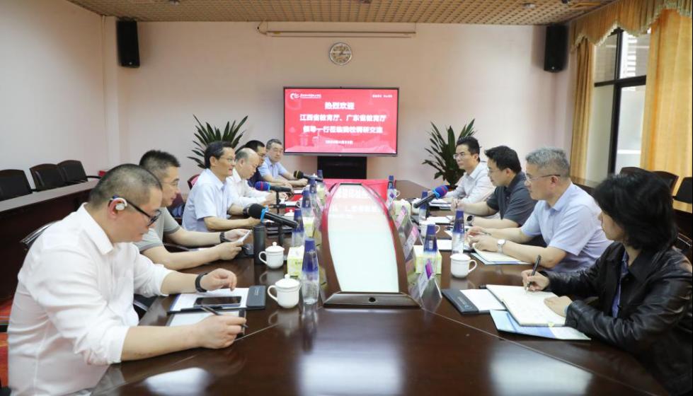 4月23日,江西省教育厅职成处副处长杨涵深、江西机电职业技术学院校长花严红等一行7人赴我校南海校区,实地调研学校产教融合、科教融汇工作情况。广东省教育厅职终处一级调研员李庆松陪同,学校党委书记杜安国、副校长邓毛程接待,并一同前往学校合作企业蘑菇物联投建的工业互联网实训室、广州易方科技投建的“数字人”实训室参观,听取信息技术学院相关人员的介绍。