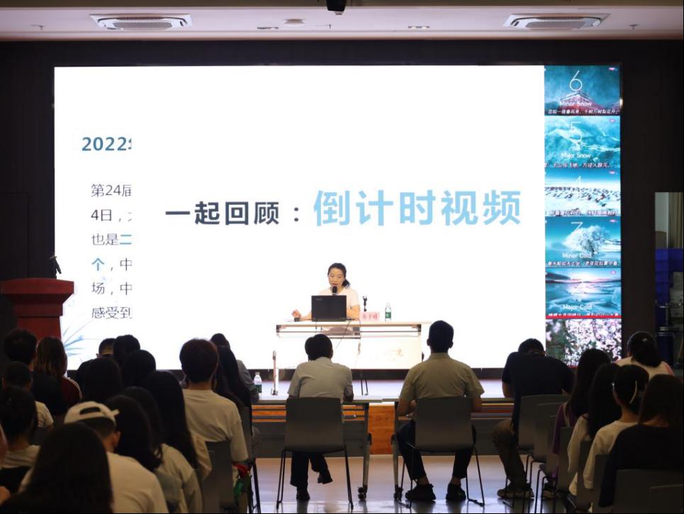 活动邀请中国工艺美术学会会员、中国高等教育学会美育专业委员会会员、广州城市职业学院马克思主义学院易子晴老师做“二十四节气中的浪漫”主题讲座。易子晴以节气谷雨为切入点,通过二十四节气的历史渊源、天文历法、气象变化、物候现象、农事活动、民间习俗等内容的讲述,引导师生们通过二十四节气,更加深入了解非遗文化,感悟中国人千百年来的农耕文明智慧和浪漫的哲学思想,鼓励大家继承和发扬中华优秀传统文化。活动现场以谷雨节气为主题,设置了竹编、拼图、剪纸、书画、投壶等传统文化艺术体验摊位,打造“古韵新声”的沉浸式课堂。