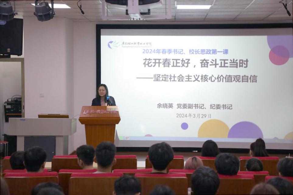 近日,学校党委副书记、纪委书记余晓英,党委副书记梁艳珍,副校长廖俊杰、邓毛程、李荣分别走进学生课堂,为同学们讲授了2024学年春季学期“思政第一课”。