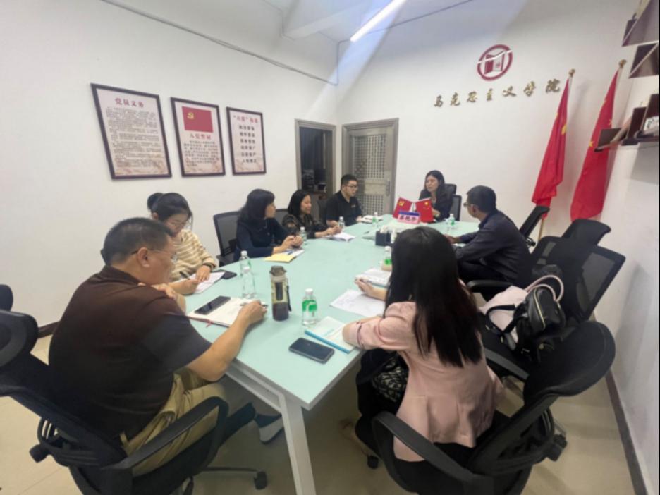 在广州新港校区第一工业实训楼207,梁副书记亲切询问了老师们的工作近况,对各位老师在学校进入新发展阶段后将面临的教学、科研方面挑战以及自身发展等困惑给予了及时解答。她强调,马克思主义学院要不断加强师资队伍建设,重视科研能力的培养,不断促进学院高质量发展,为学校发展贡献力量,为此她提出三点要求:一是在信息社会,教师要具备终身学习、资源共享与应用的能力,提升在信息化环境中有效教学的信息素养;二是积极探索思政课程和专业课程的有效结合,使学生充分领会思政教育的意义和内涵,树立正确的世界观、人生观、价值观;三是思政课教师需要不断提升科研能力,做好科研规划和方法选择,注重团队合作和交流,加强实践和反思,注重创新和思考,推动思政课教学和研究的创新和发展。